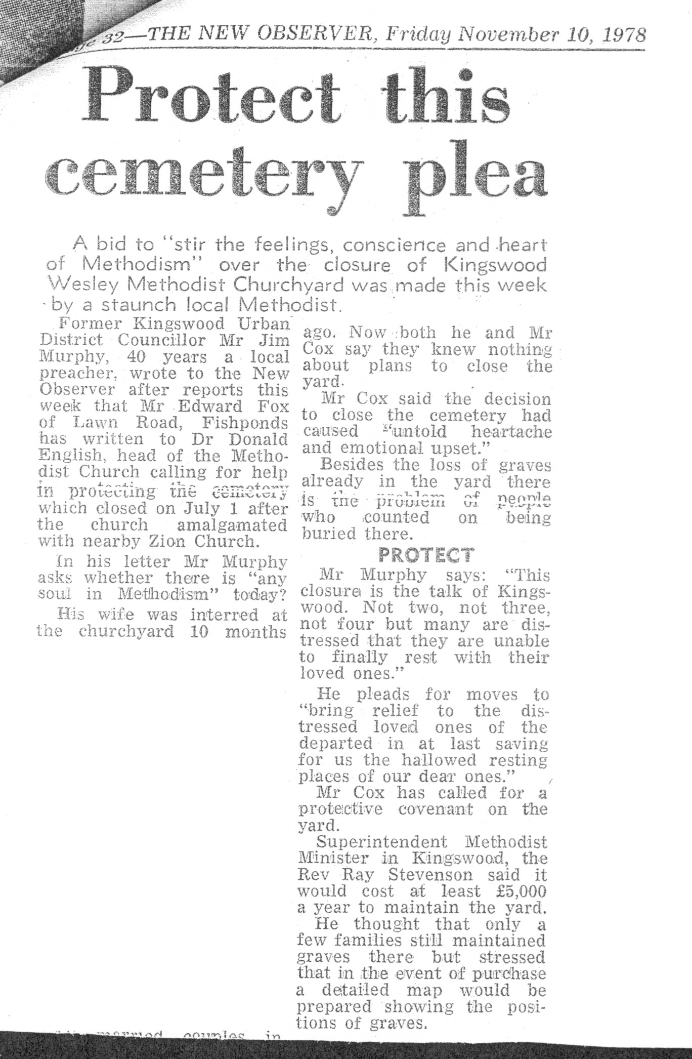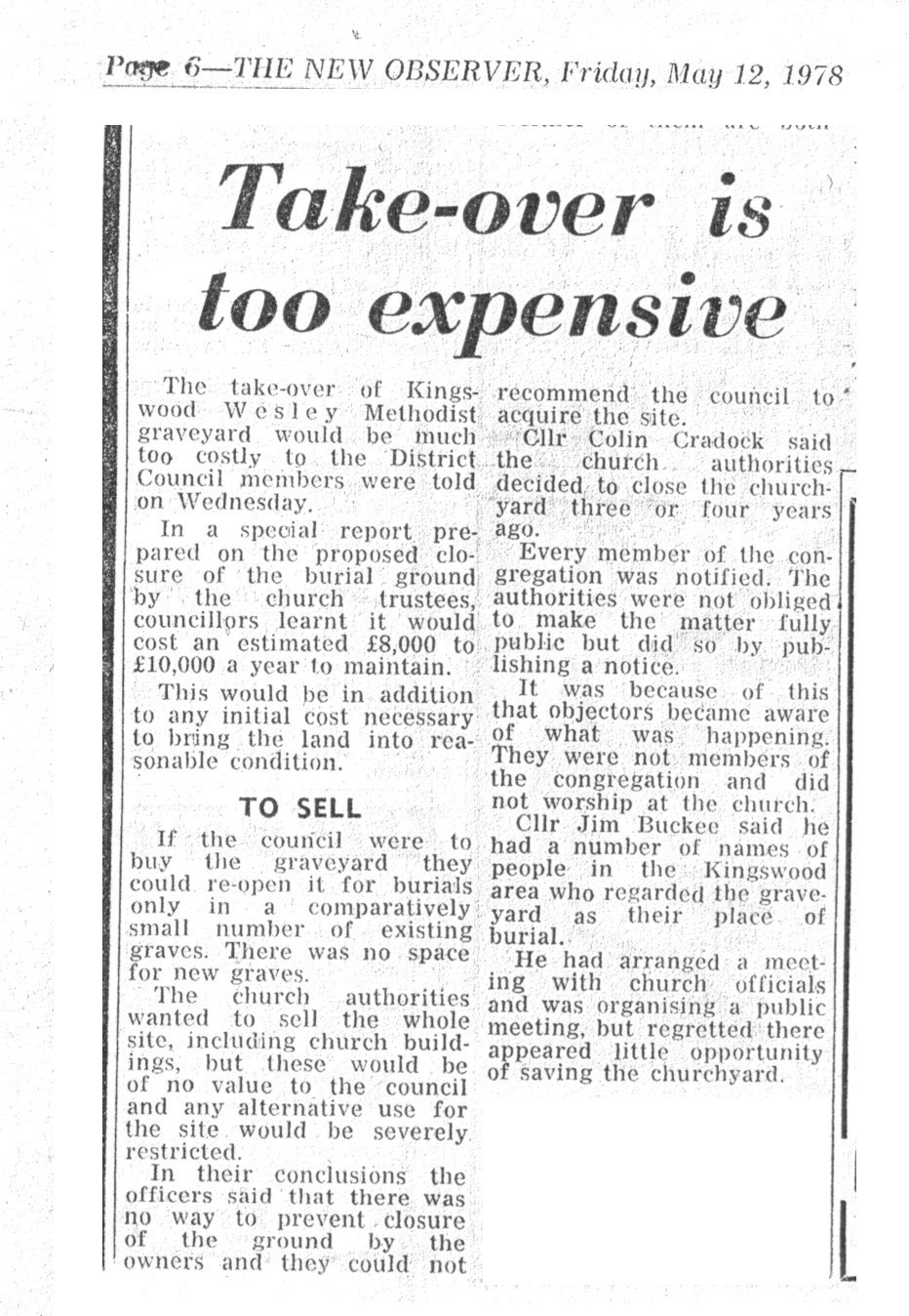 - 12 May 1978, The New Observer (council powerless to stop burial ground closure)