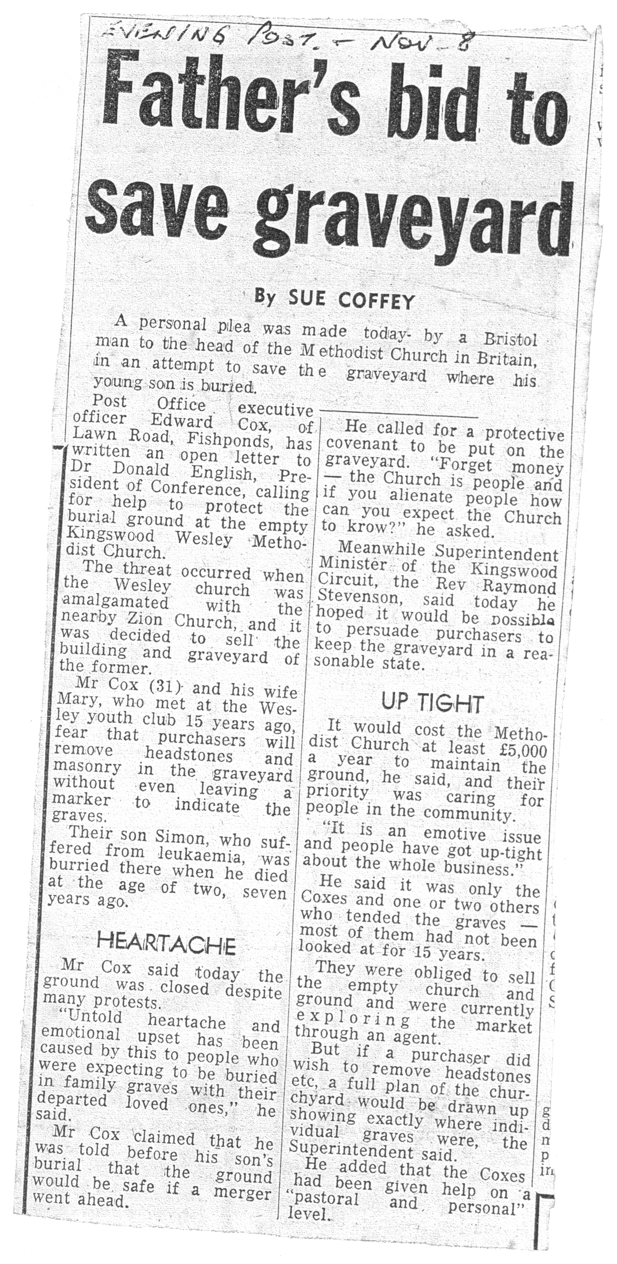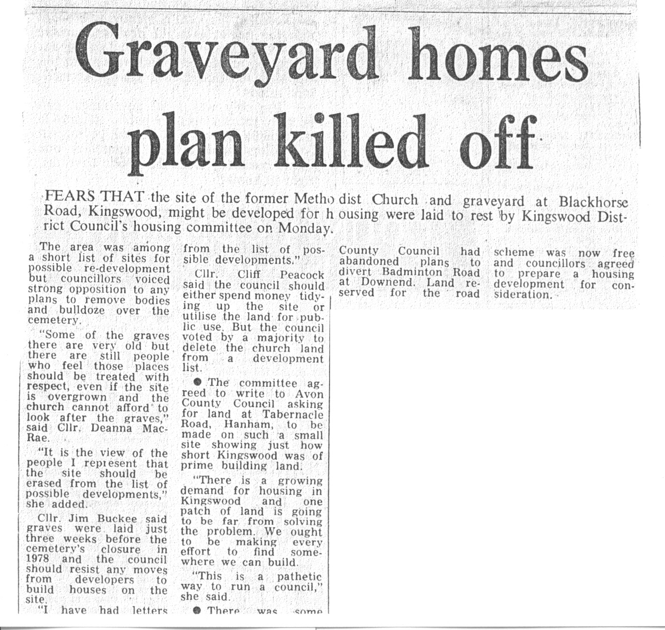 - 20 Oct 1978, Bristol Journal (mother's heartbreak over burial ground closure)