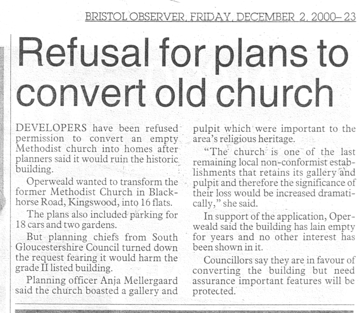- 02 Dec 2000, Bristol Observer (council refuses plans to convert Chapel into flats)