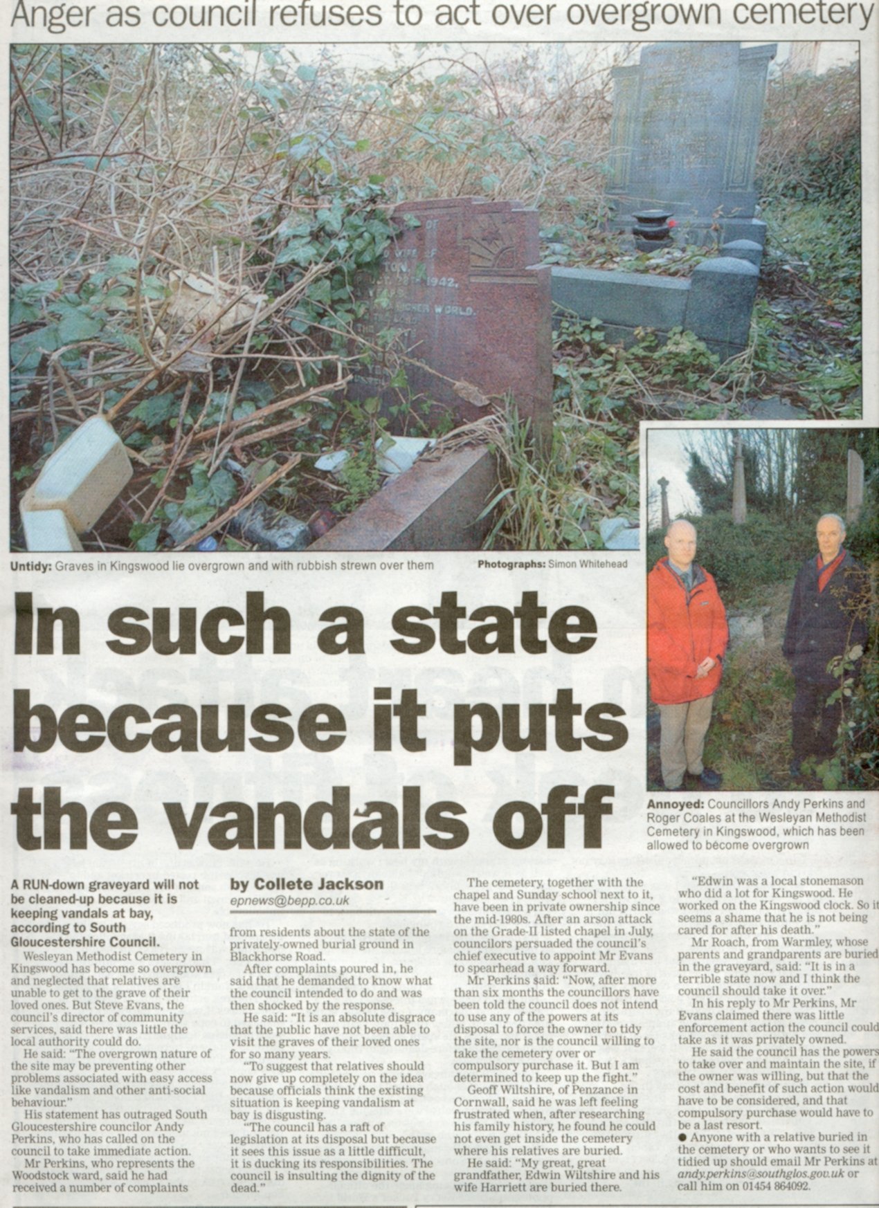 - 31 Jan 2005, Evening Post (coverage of our initial complaints to South Glos Council about the site)