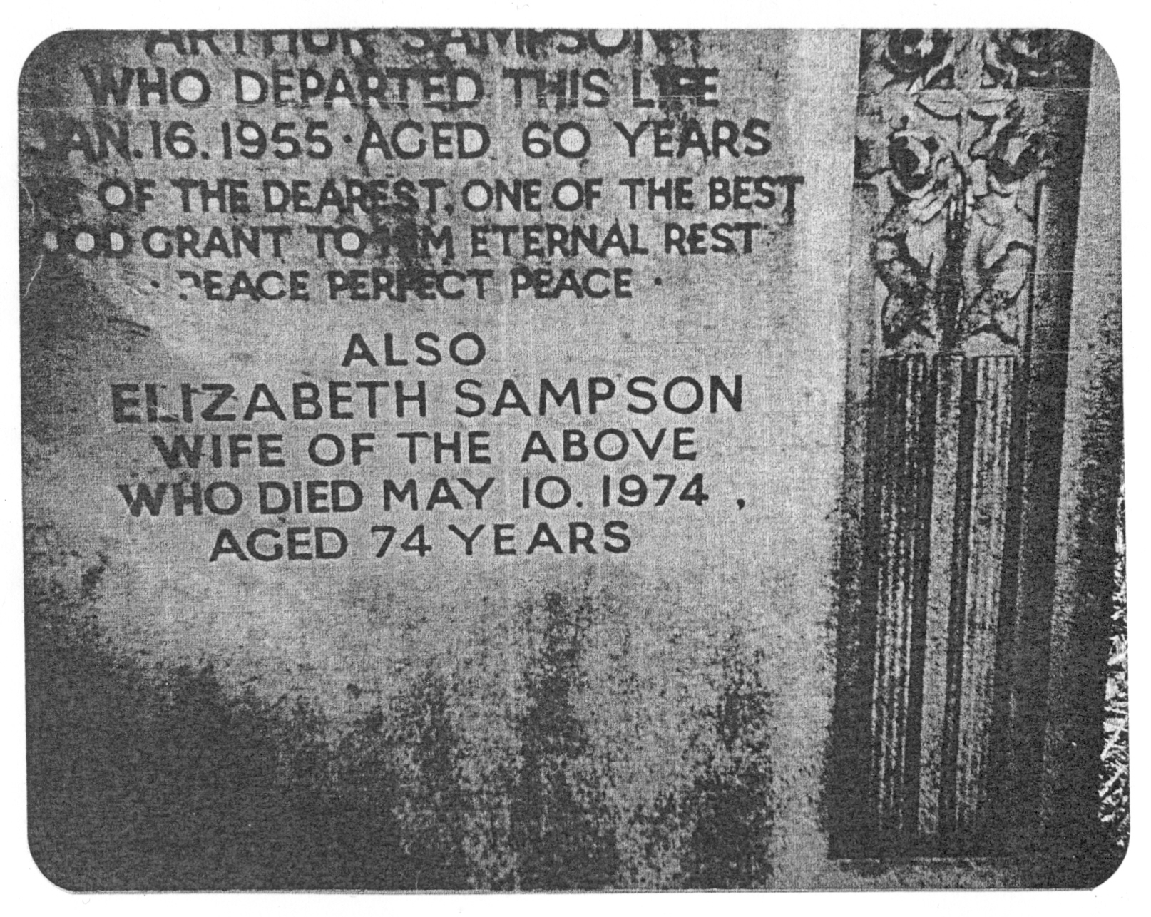 SAMPSON gravestone (From photocopy of a photo. Location and date unknown) |