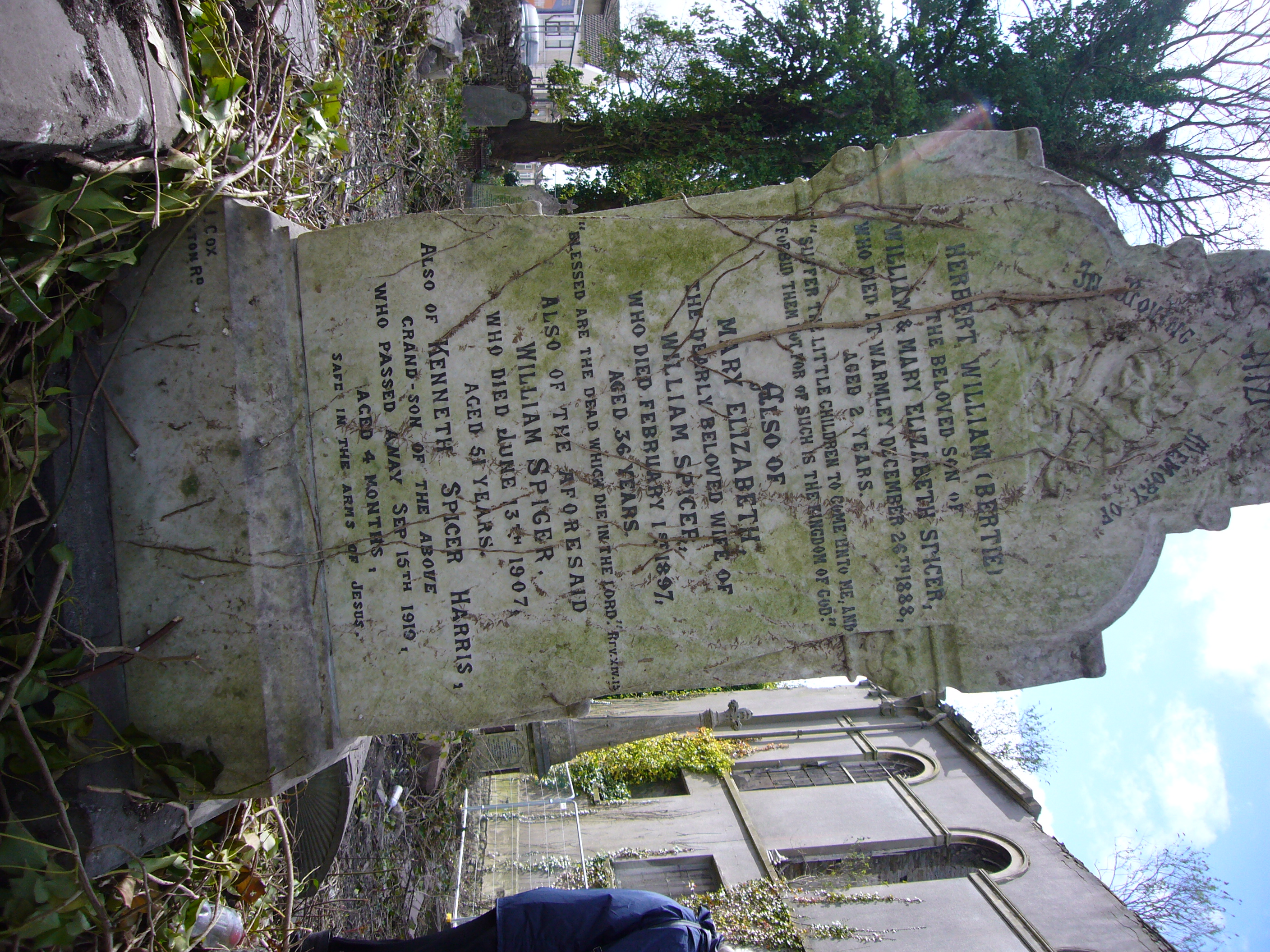 SPICER and HARRIS gravestone (Grave 4 in area redeveloped for car parking, 31 Mar 2017) |
