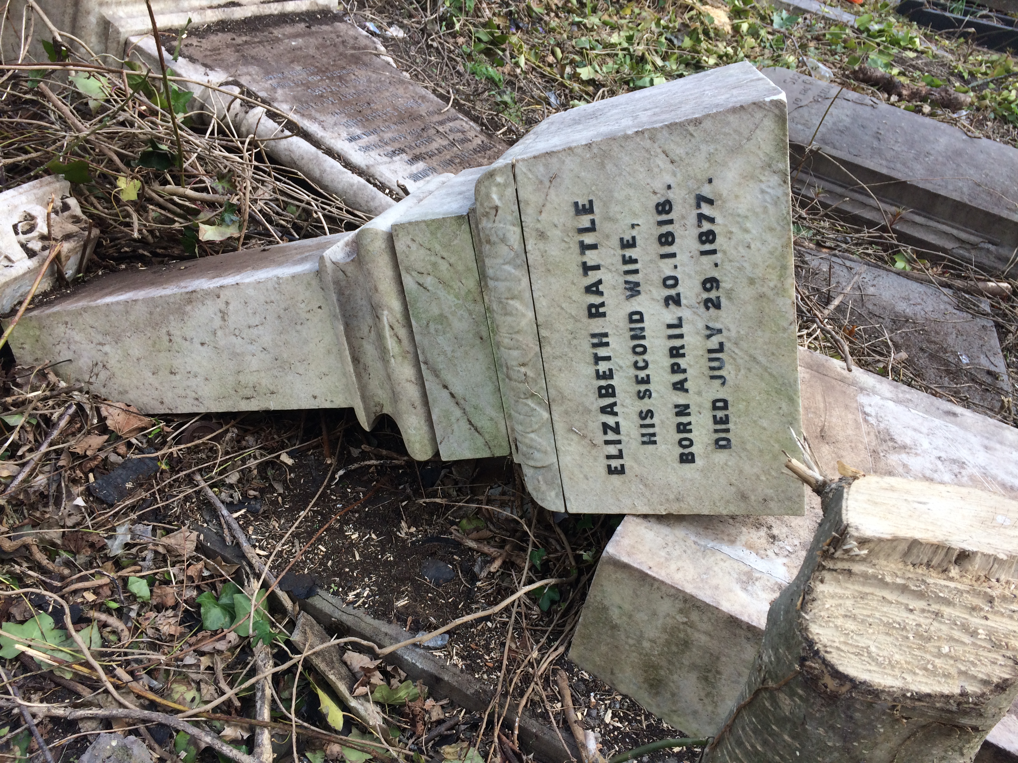 PRATTEN gravestone (Grave 11 in area redeveloped for car parking, 31 Mar 2017) |