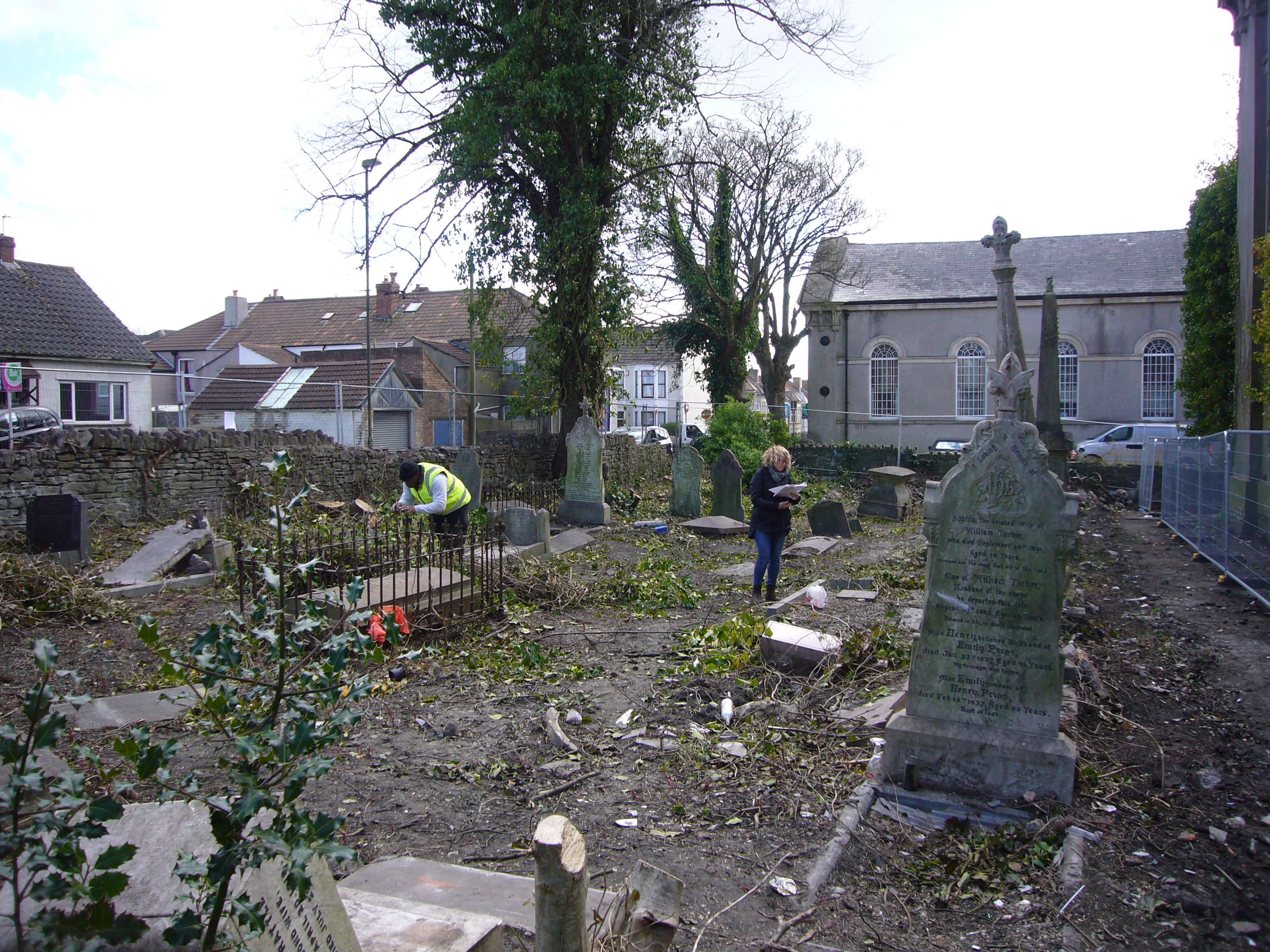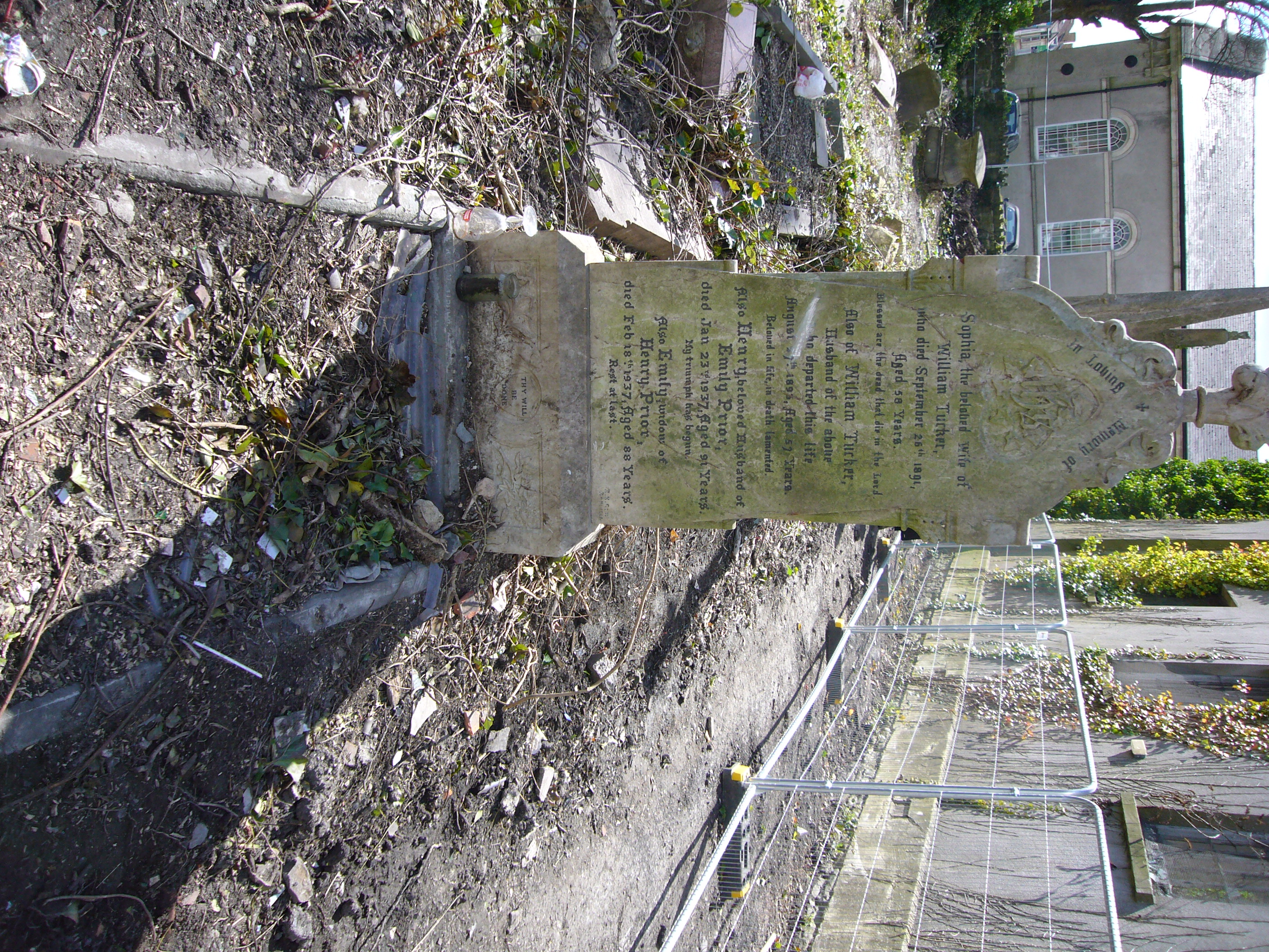 TUCKER and PRIOR gravestone (Grave 14 in area redeveloped for car parking, 31 Mar 2017) |