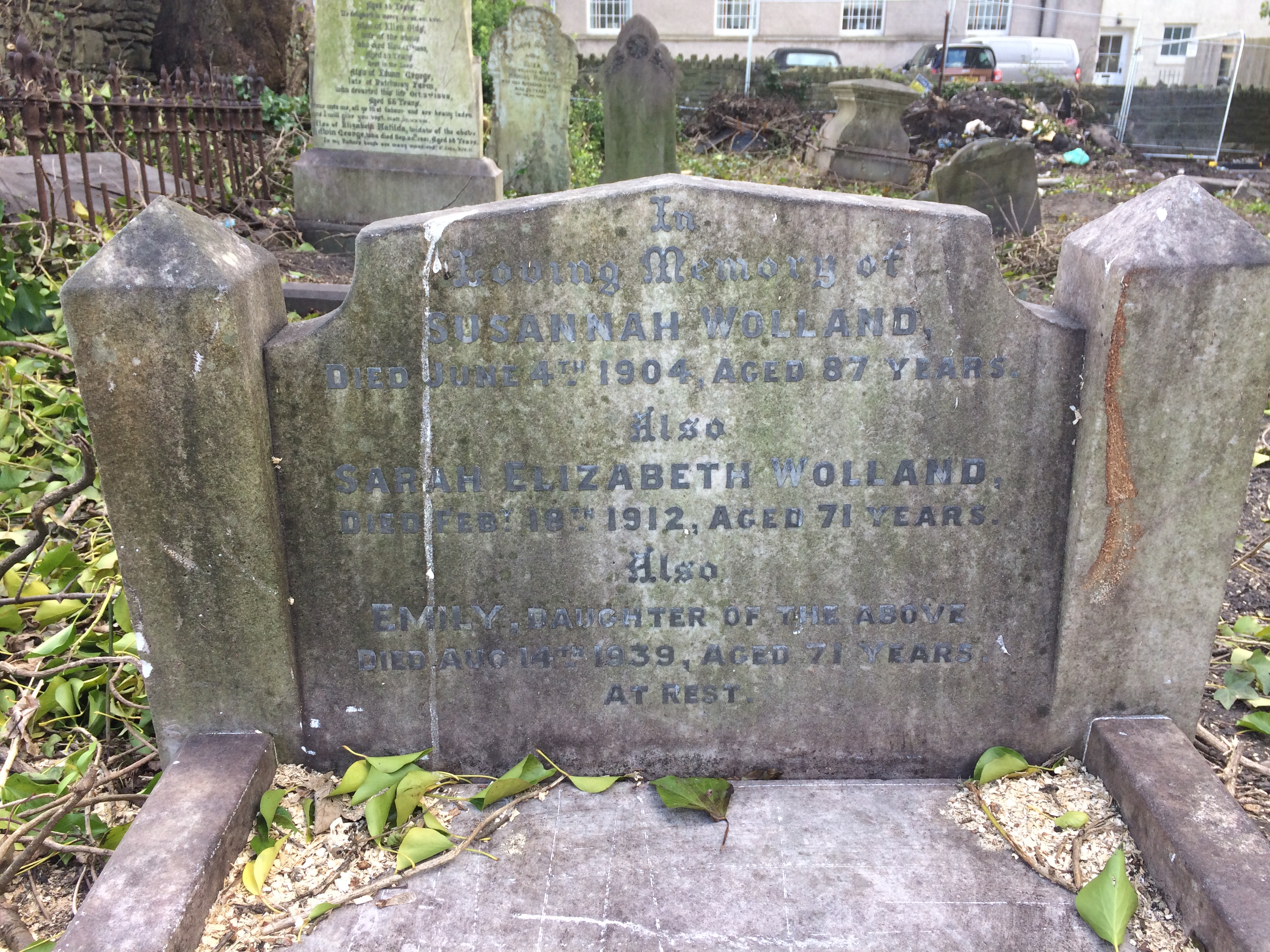 WOLLAND gravestone (Grave 24 in area redeveloped for car parking, 31 Mar 2017) |