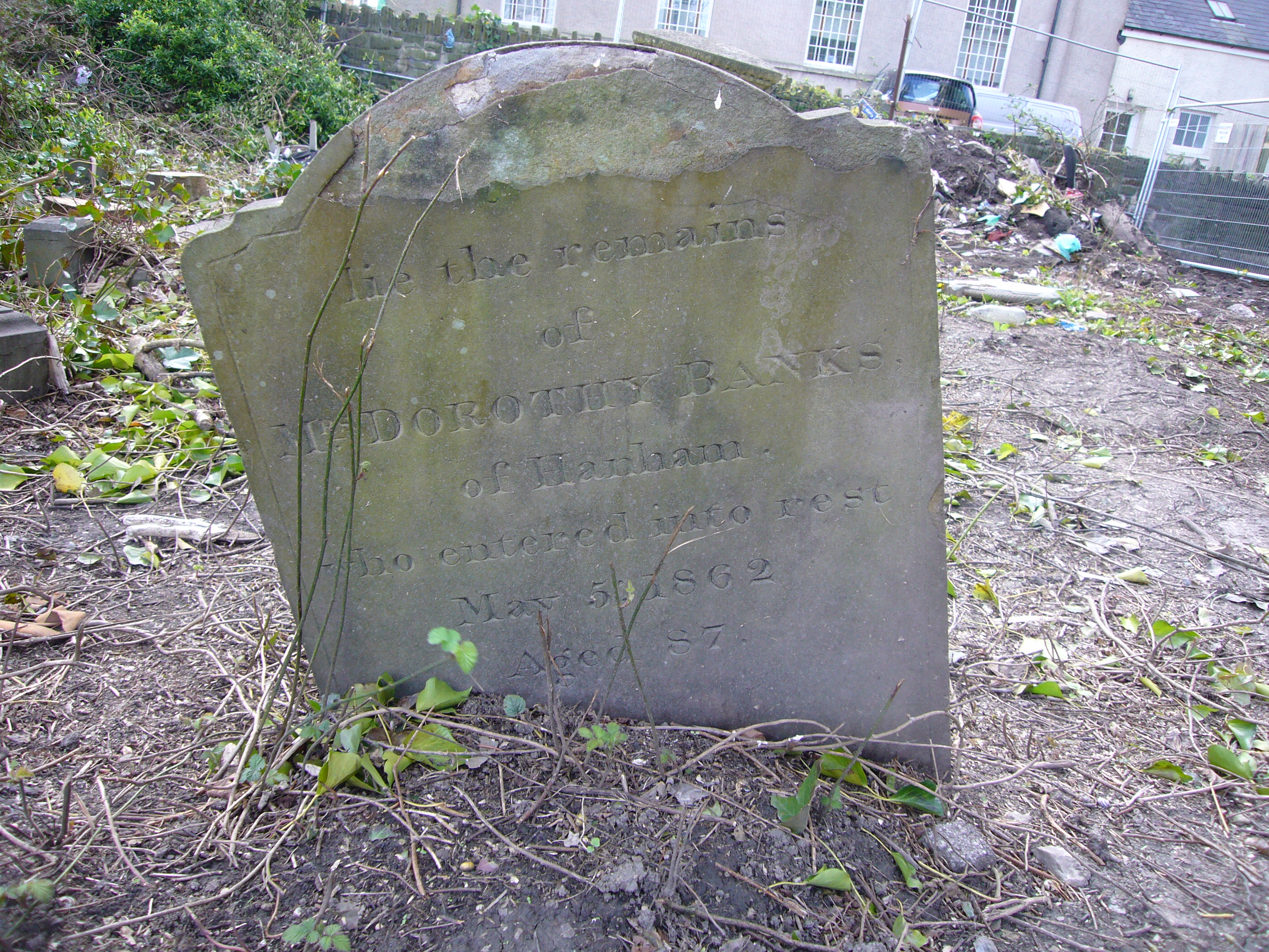 BANKS gravestone (Grave 38 in area redeveloped for car parking, 31 Mar 2017) |