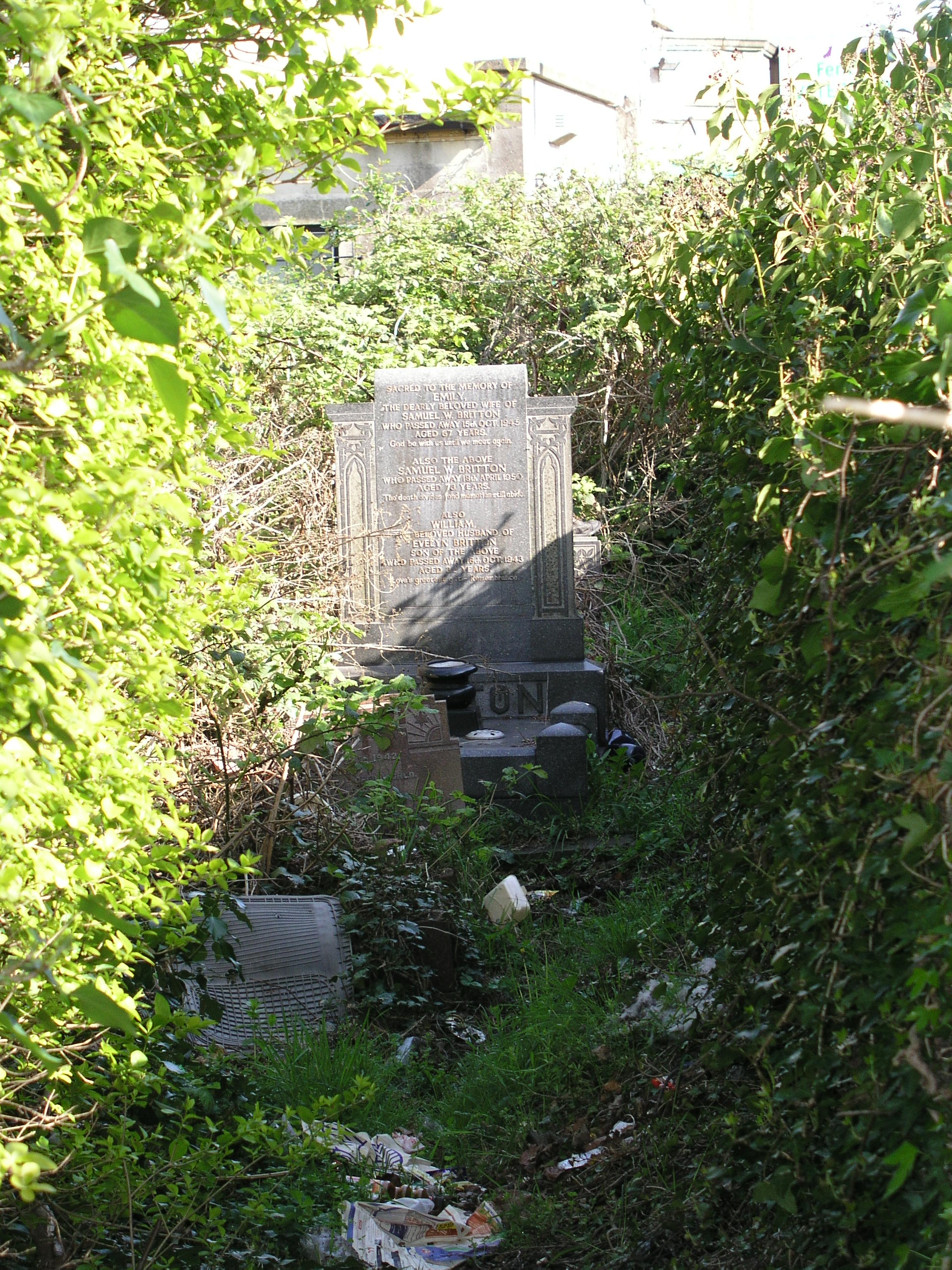 BRITTON gravestone (Grave 26 in area redeveloped for car parking, 31 Mar 2017) |